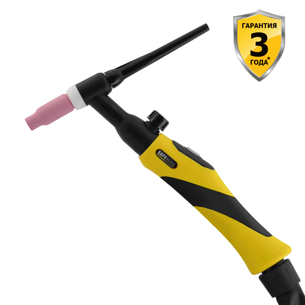 Горелка БАРСВЕЛД TIG-18 V — предназначенa для ручной дуговой сварки неплавящимся электродом в среде инертных газов (Ar, He) низколегированных и нержавеющих сталей, сплавов никеля, меди, а также алюминиевых сплавов на переменном токе с использованием осциллятора.