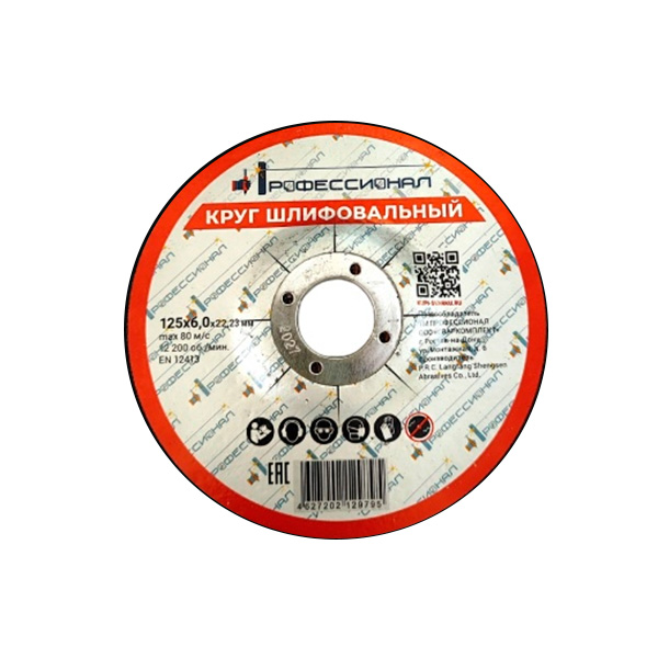 Круг шлифовальный ПРОФЕССИОНАЛ 125х6,0х22,23 предназначается для шлифовки поверхностей из металла.