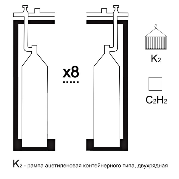 Рампы ацетиленовые контейнерного типа на 8 баллонов предназначены для подачи газа из баллонов потребителю.