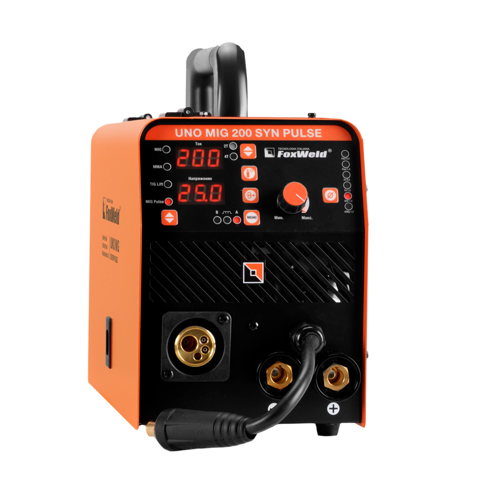 Foxweld UNO MIG 200 SYN PULSE (MIG/TIG/MMA, 220 В, 40-200 А, ПН 60%, ф 0,8-1,2 мм, 9,1 кг, 2 диспл.)