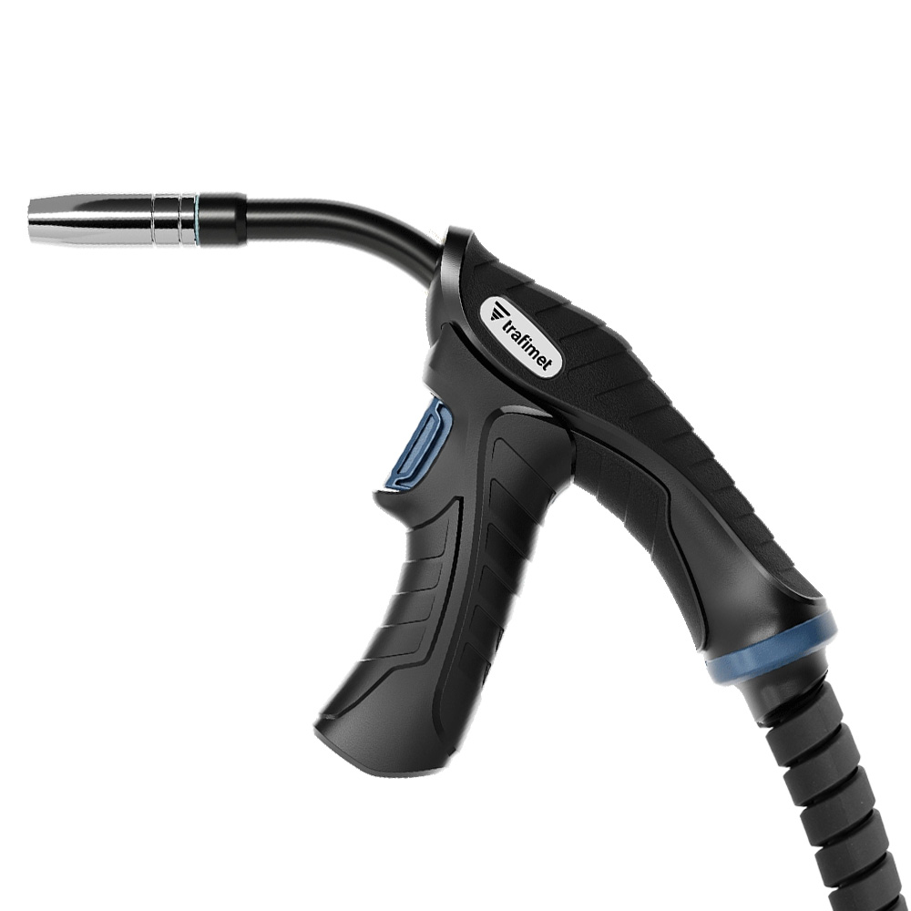 Сварочная горелка Trafimet ERGOPLUS New 15 - высокопроизводительная горелка с евроразъемом и улучшенной эргономикой для полуавтоматической сварки MIG/MAG проволокой диаметром 0,8-1,0 мм. Сварочный ток при ПН 60% в CO2 - 180 А. В комплекте поставляется съемная рукоятка пистолетного типа.