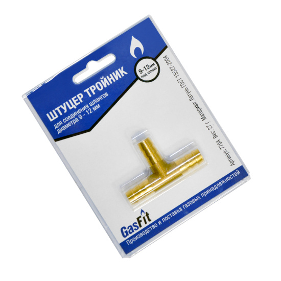 Штуцер тройник (блистер, ф9/12 мм, елочка 3-х ход.), GasFit