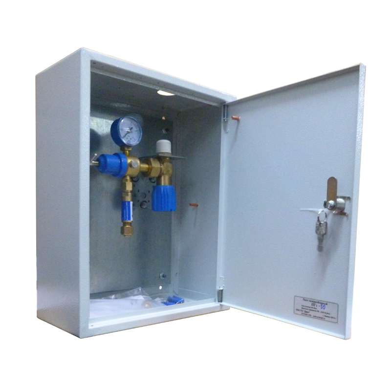 Посты газоразборные модели ПГК-10-з закрытого типа и ПГК-10 открытого типа предназначены для распределения и редуцирования давления кислорода потребителям от газовой сети.