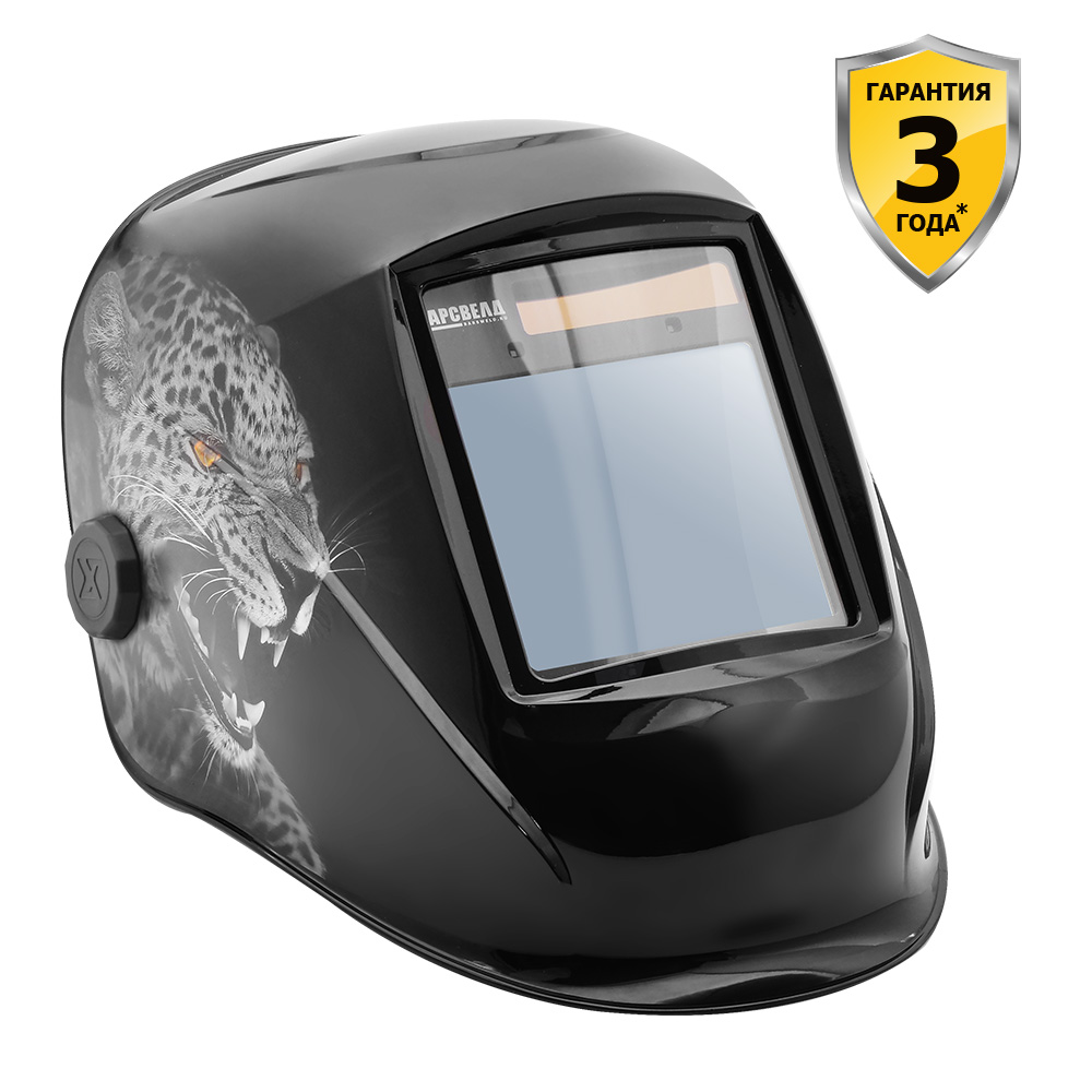 Легкая маска глубокого черного цвета обладает плавными линиями в дизайне, глянцевой поверхностью с фотопринтом звериного оскала снежного барса и выполнена из огнеупорных материалов высокого качества: пластик мягкий, но очень прочный. Маска отлично служит для защиты глаз сварщика от ультрафиолетового (UV), инфракрасного (IR) излучения и от брызг раскаленного металла.