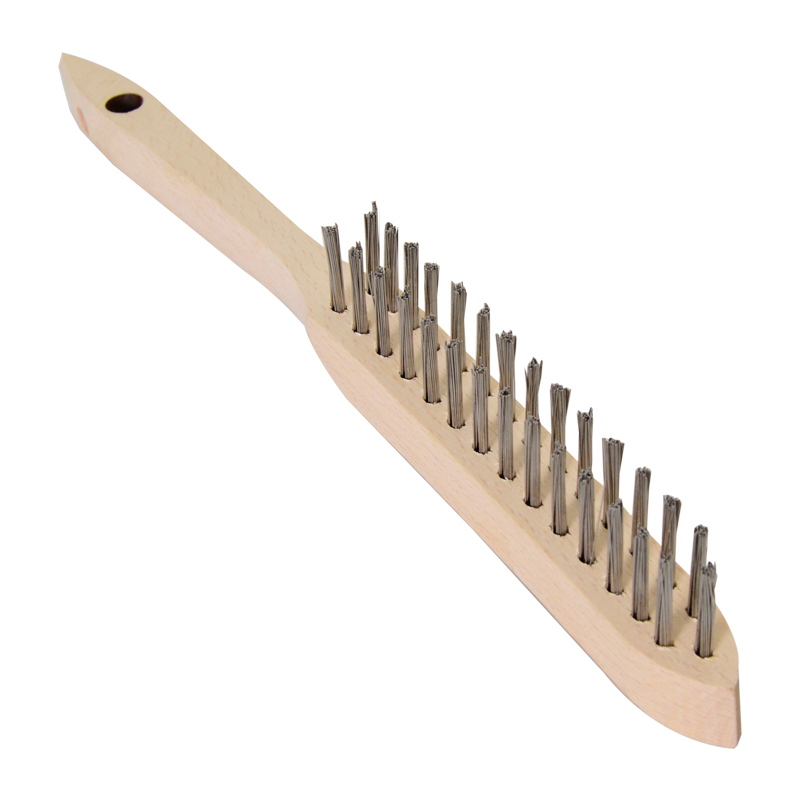 Щетка ESAB 2-х рядная из нержавейки обладает деревянной рукояткой и проволочной стальной щетиной.