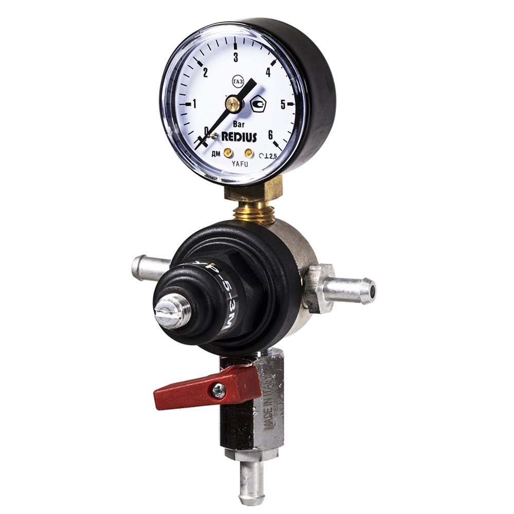 Редуктор углекислотный УР-5-3М3-112 (1 выход- краник+ниппель 8,6 мм, 2 выход- ниппель 8,6 мм), REDIUS