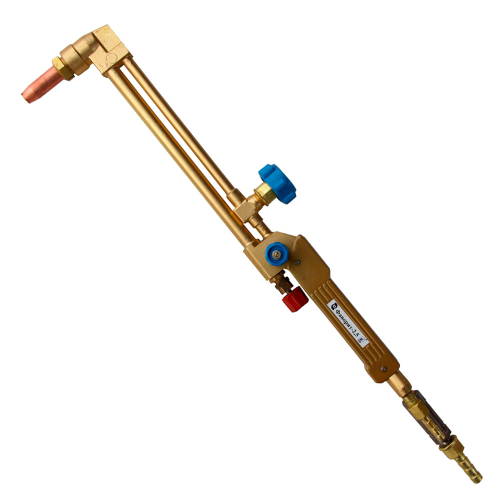 Резак жидкотопливный "Фаворит-2,5", входящий в комплект аппаратуры для резки стали на жидком горючем КЖГ-1Б, предназначен для ручной разделительной резки углеродистых и низколегированных сталей с использованием жидкого горючего - бензина.