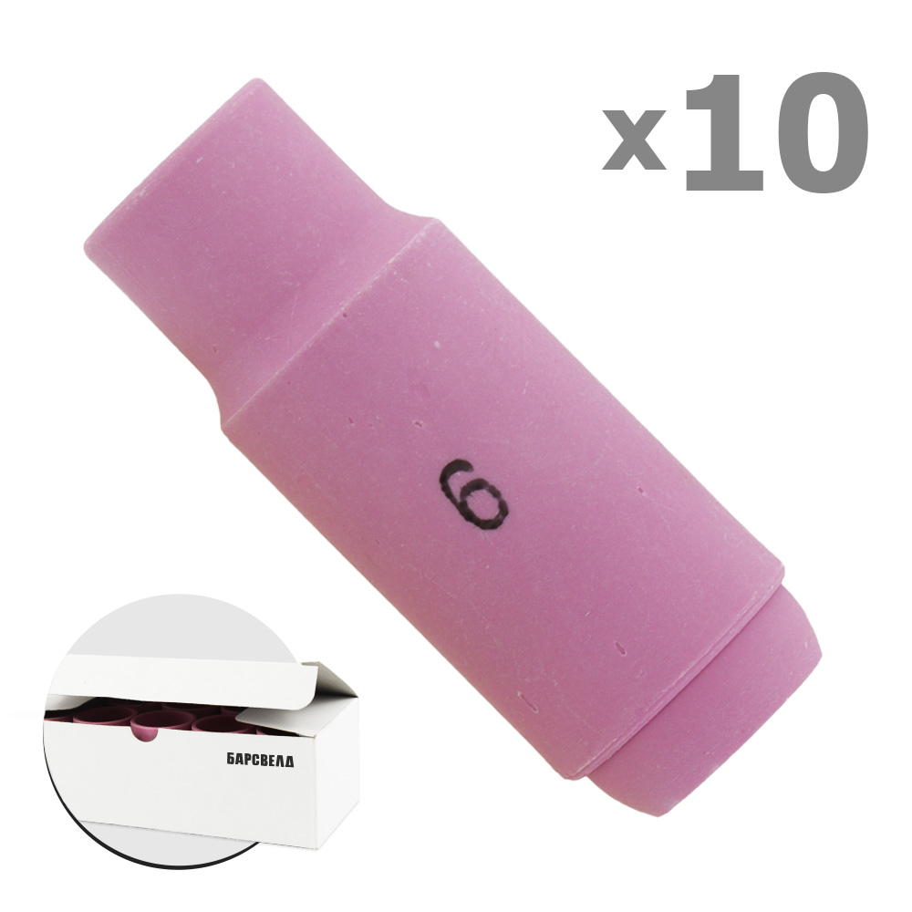 Керамическое сопло БАРСВЕЛД №6 ф 9,5 мм используется в сварочных горелках при ручной аргонодуговой сварке методом TIG.