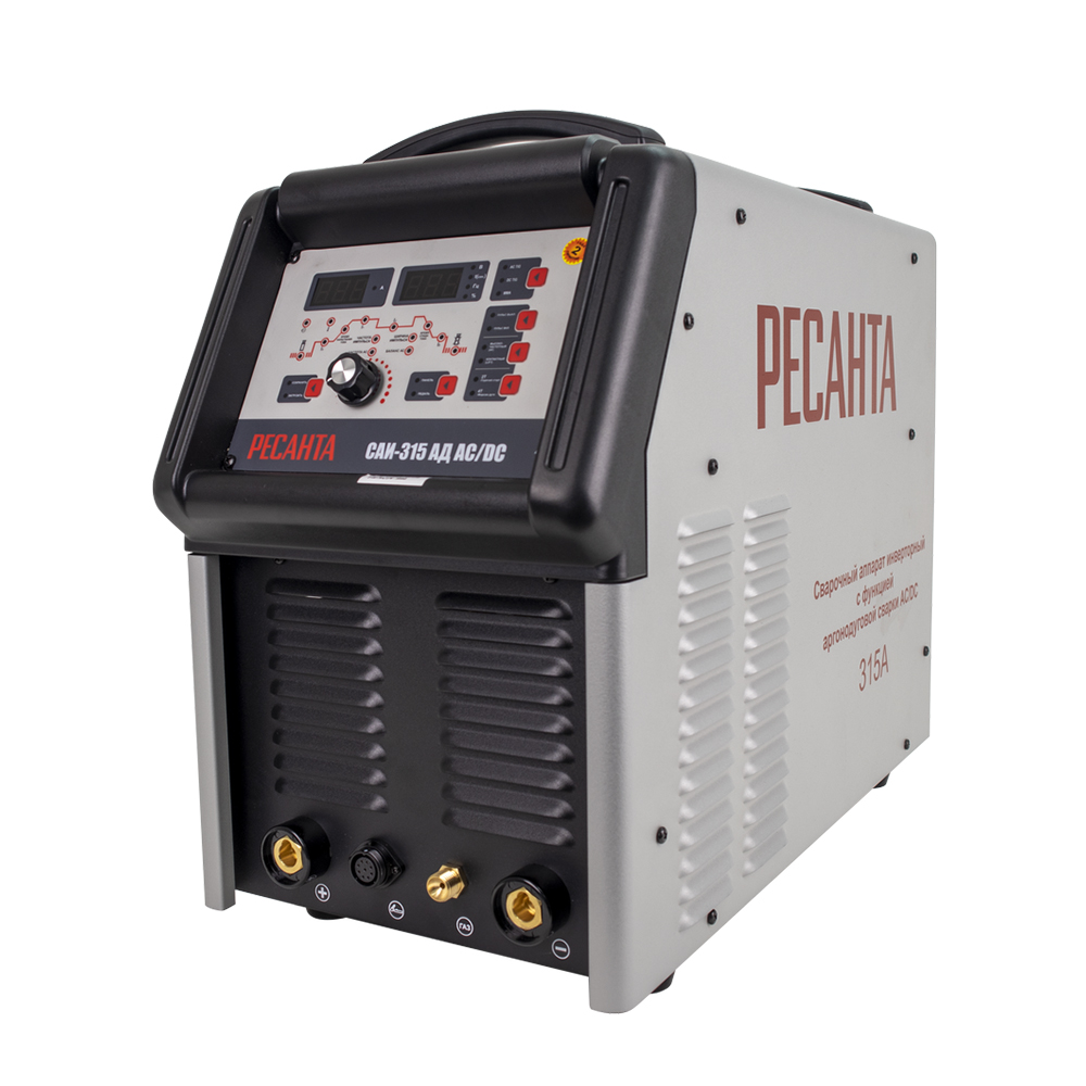 РЕСАНТА САИ-315 АД AC/DC – современная инверторная аргонодуговая установка, позволяющая работать как на постоянном (сварка черных и нержавеющих сталей, меди, титана и пр.), так и на переменном токе (сплавы алюминия, магния, медные сплавы больших толщин и пр.), где требуется удаление окислов со свариваемой поверхности). Использование и развитие инверторной технологии в сварке существенно уменьшает массо-габаритные характеристики. Поэтому сварочные аппараты AC/DC легче и более эффективны по сравнению с традиционными. Основным принципом AC/DC установки является использование двойного инвертора и создание полуволн прямоугольной формы, которая делает сварочную дугу более стабильной, увеличивает тепловложение и очищающий эффект.
