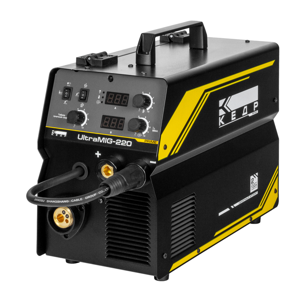Полуавтомат КЕДР UltraMIG-220 (220В, 30-220А) - предназначен для сварки на малых и средних предприятиях, частных мастерских, а также для использования в домашних хозяйствах. Аппарат выполнен на современных IGBT-модулях, надежно защищенных силовой частью, а высокопрочный металлический корпус позволяет использовать его в тяжелых промышленных условиях. Цифровая панель с дисплеями значительно упрощает работу с данным аппаратом и позволяет снизить классификацию сварщика без потери качества сварки.